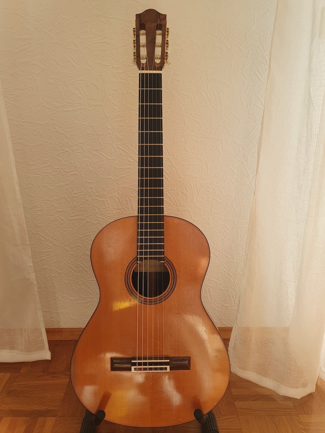 A guitar made by Rolf Eichinger has appeared for sale by the owner. If you are interested please contact me and I will pass on the contact details of the seller. Please contact him for price and any other details.